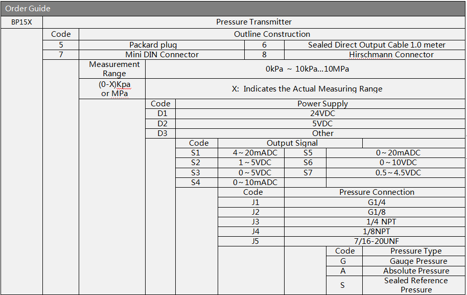 | Pressure Type | Gauge Pressure, Absolute Pressure, Sealed Pressure |